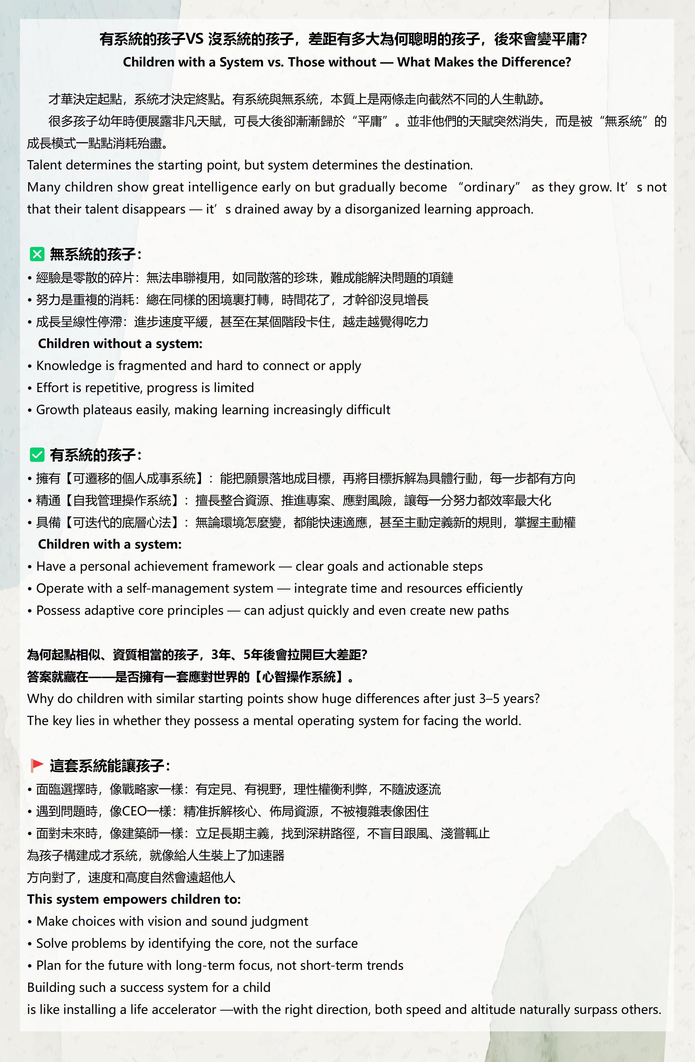 有系統的孩子 VS 沒系統的孩子,差距有多大為何聰明的孩子,後來會變平庸?